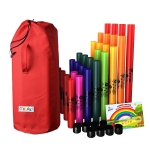 Zestaw jest złożony z 28 rurek podzielonych na dwa zestawy diatoniczne oraz dwa zestawy pentatoniczne. Diatonika pozwala starszakom grać proste melodie z pomocą książeczki Piosenki i melodie na kolorowe instrumenty, natomiast pentatonika — dublując część dźwięków — doskonale sprawdza się podczas rytmiki z liczną grupą, gdy każde dziecko musi trzymać coś w ręku. Całość trafia do czerwonego worka, który pomieści nawet więcej rurek z akcesoriami niż tych przewidzianych w tym zestawie — co oznacza, że porządek da się tu utrzymać, o ile ktoś w ogóle ma na to ochotę.